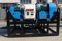 它由隐含空心轴和差速器的螺旋输送器构成。当待分离的悬浮液通过空心轴送入滚筒时,在高速旋转产生的离心力的作用下,即刻将其扔入滚筒腔中。高速转动的滚筒产生有力的离心力,比液相稠的固相微粒粘在滚筒的内壁上形成固体层(由于环形,称做固体环层);由于水分少,离心力小,因此只能在固体环层内部形成液体层,称做液体环层。由于螺杆和滚筒的转速不同,因此两者之间存在相对运动(即,转速之差)。螺杆和滚筒的相对运动用以将固体环层中的污泥缓慢推到滚筒的锥形端并通过干燥区。此后,它从分布在滚筒圆周上的出口连续排出。液环层中的液体通过重力从堰口连续\“溢流\”排放到滚筒的外部,以形成分离的液体。